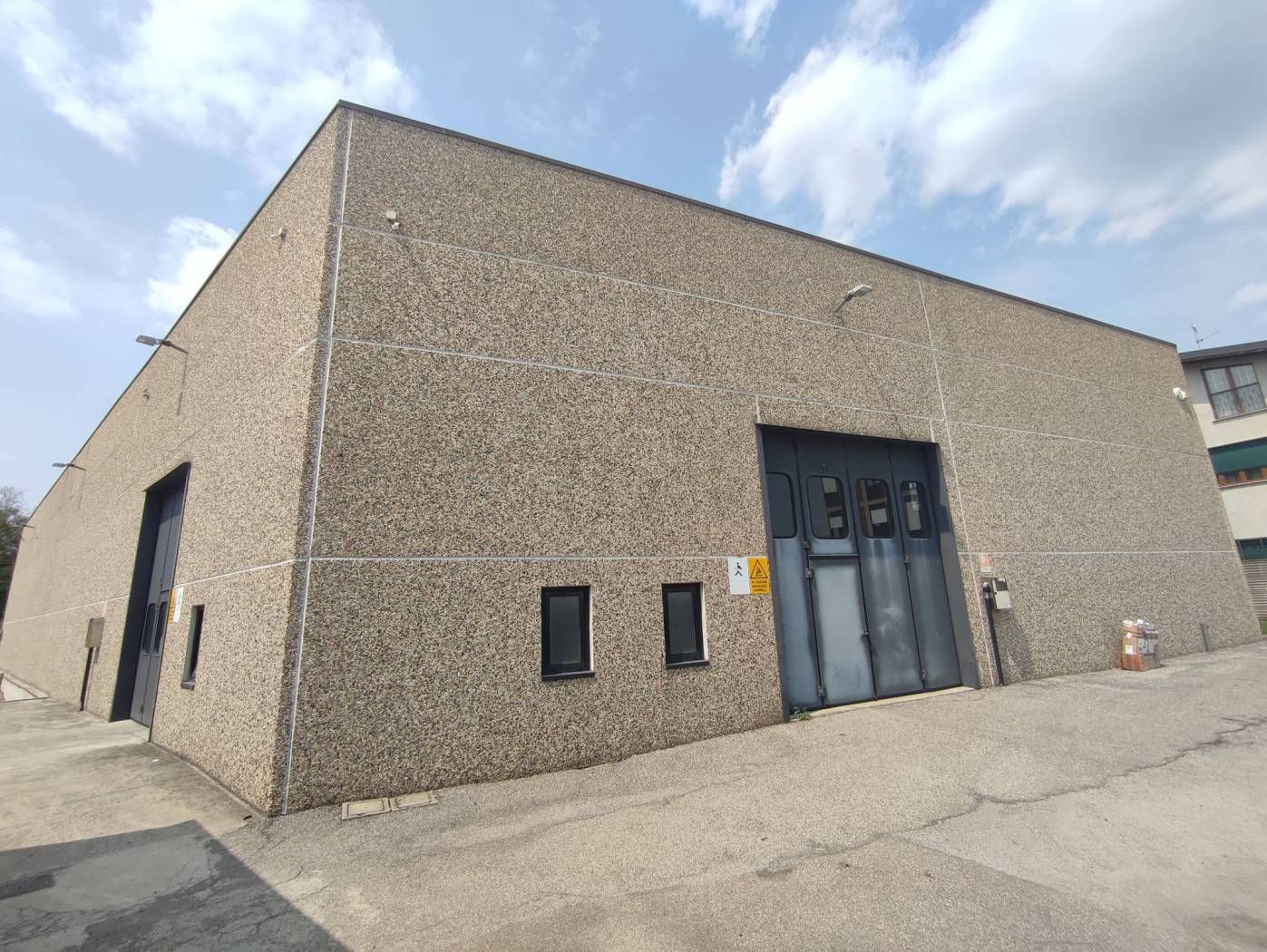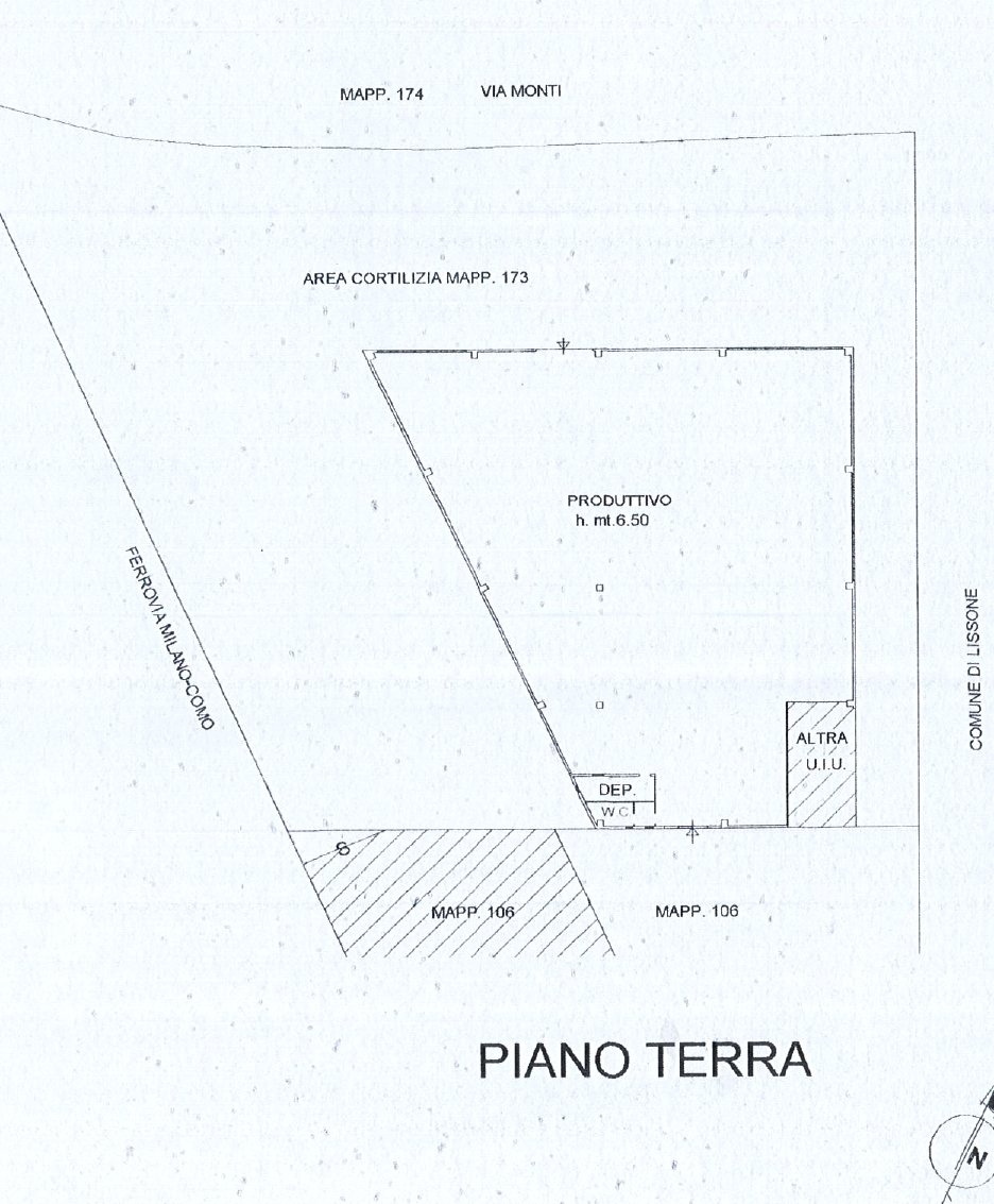 Lissone, zona comodissima con la SS36, proponiamo Capannone di 1.250mq con uffici e servizio, oltre all'area esterna con piazzale e giardino per un totale di ca. 2000mq.